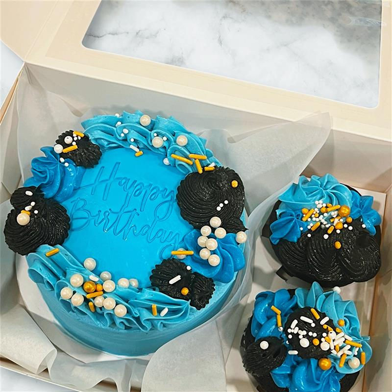 Our Valentines Day Bento Cake Box features a 6-inch mini cake paired with two perfectly matched cupcakes ideal for intimate celebrations or gifting for love day! Seasonal for valentines day.